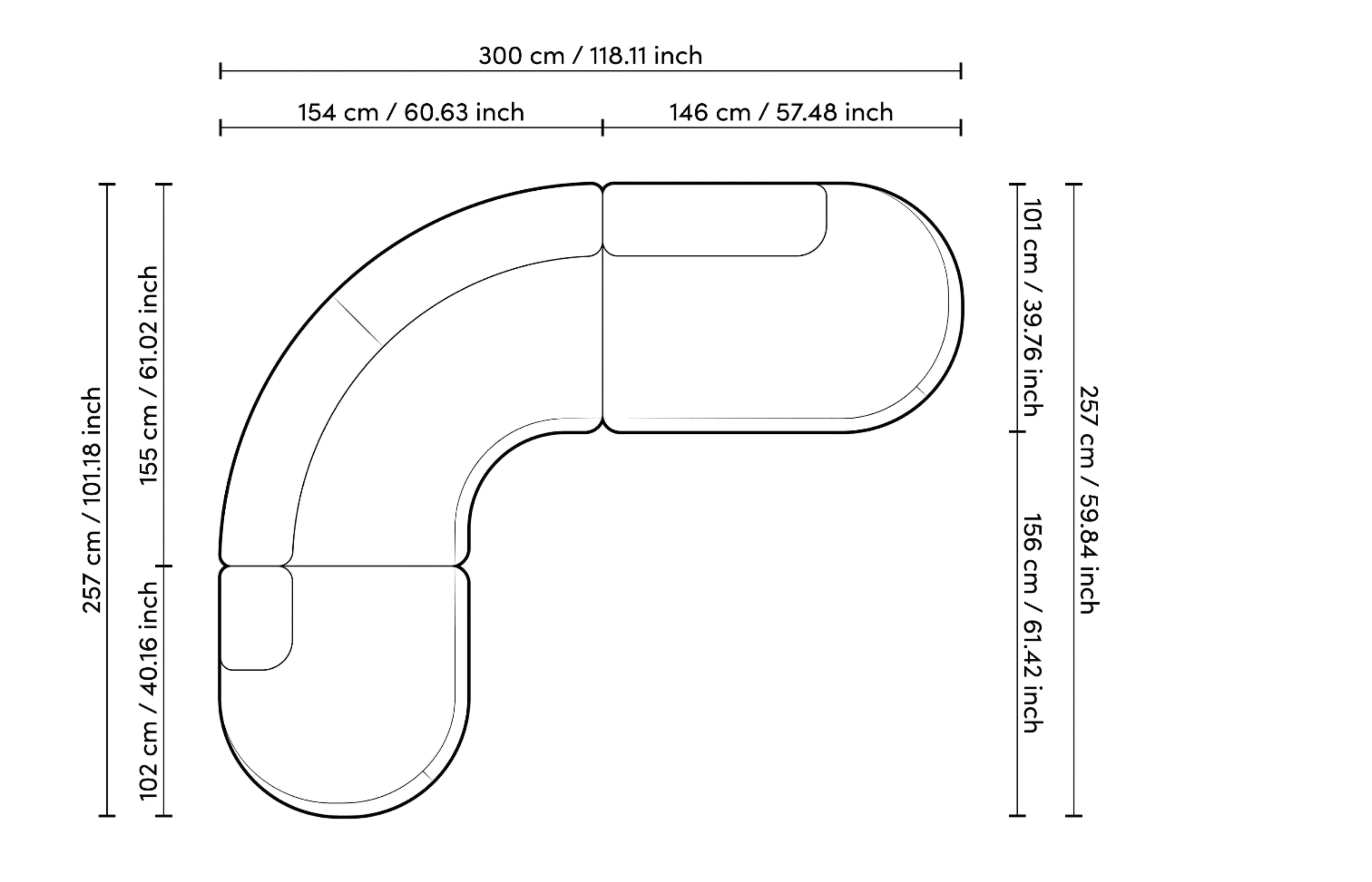9’10” x 8’5” (W x D) / 300cm x 257cm (W x D)