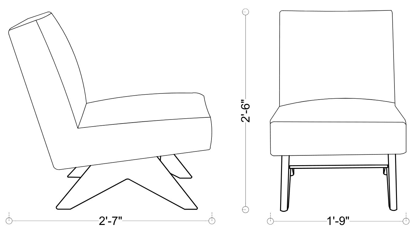 1’9” x 2’7” x 2’6” (W x D x H) / 53 cm x 78 cm x 76 cm (W x D x H)